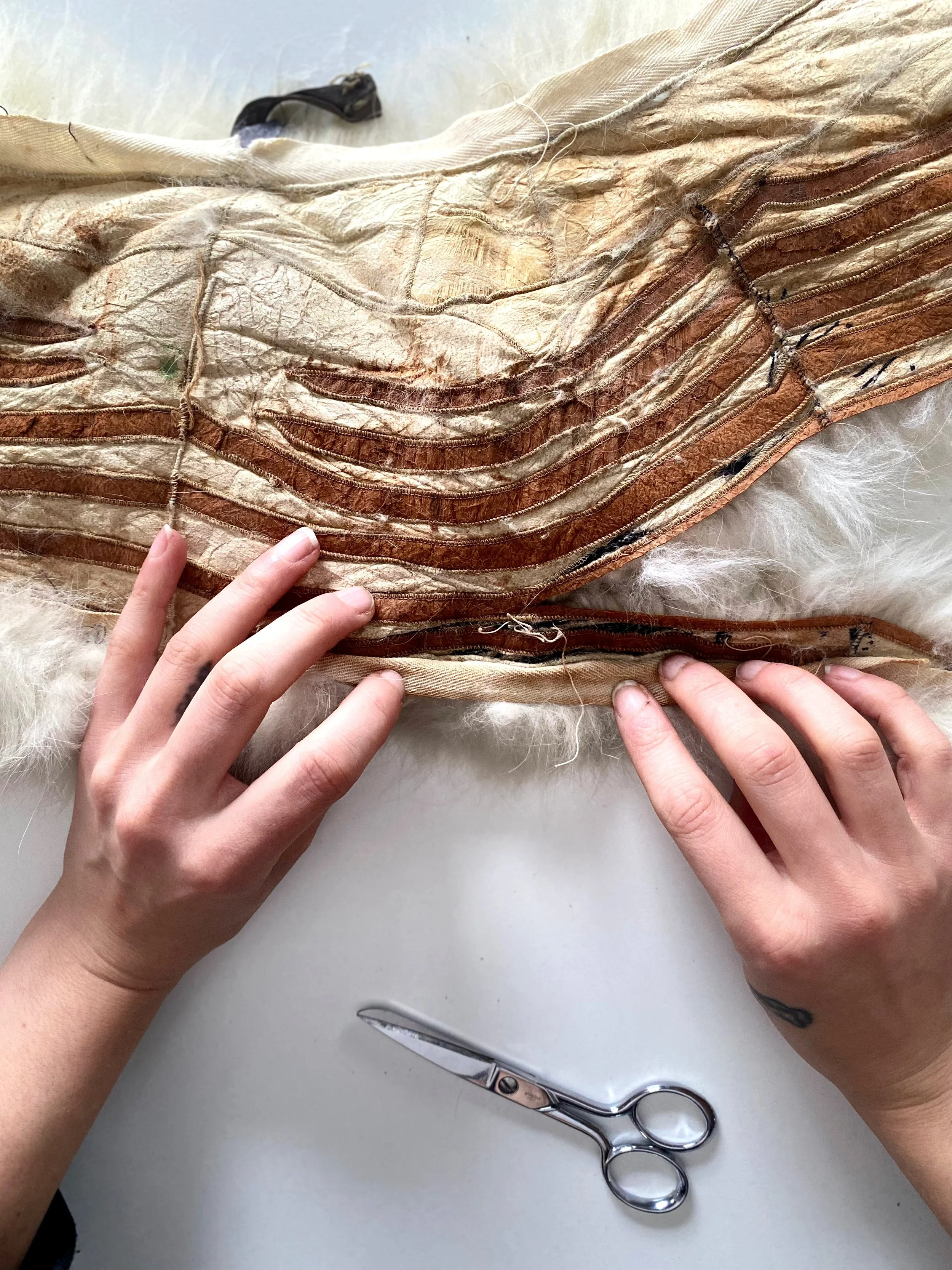 Some process photos from taking apart the stole and creating the hood of the cloak: